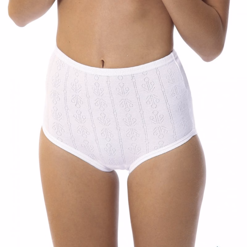 Braga alta de mujer en tejido de algodón calado.