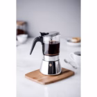 Cafetera italiana vidrio y acero inoxidable. Capacidad 10 tazas.
