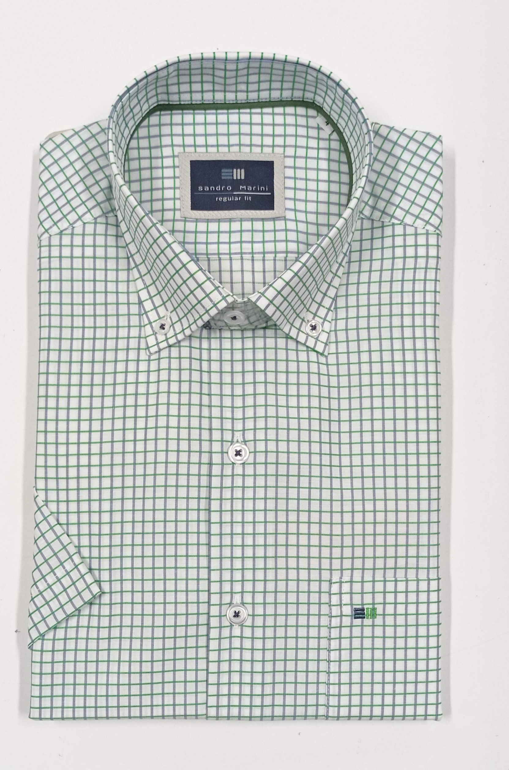 Camisa M/C de caballero. Cuadro pequeño verde y azul, muy fácil de combinar.