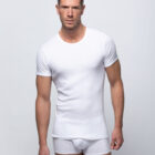 Camiseta interior de manga corta para hombre, confeccionada en algodón 100 % de máxima calidad y tejido canalé. Corte clásico con cuello redondo y tejido suave. Máxima comodidad y confort así como total transpirabilidad.