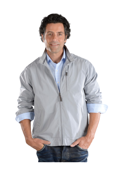 Cazadora de Caballero gris claro. Tejido de Poliester, maxima comodidad sin arrugas.