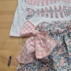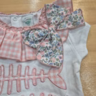 Conjunto dos piezas. Camiseta de algodón con cuello y lazo. Braguita tipo falda con lacitos. Súper cómodo.