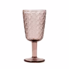 Caja de 6 copas de vidrio rosa con relieve. Capacidad 28,5cl.