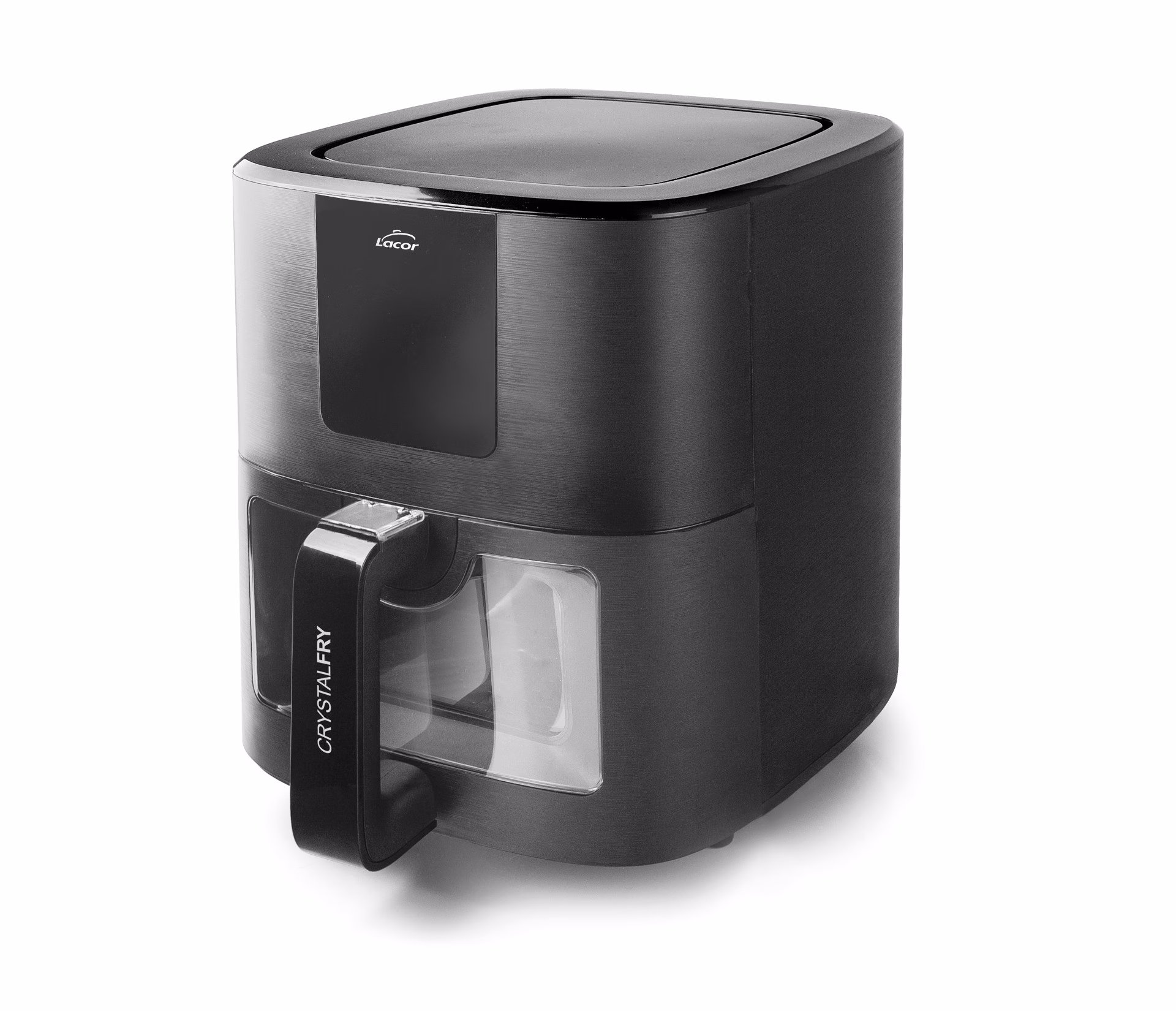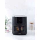 Freidora de aire de gran capacidad (7l) con puerta de cristal y luz interior, lo que permite controlar el cocinado sin necesidad de abrir la puerta. Es muy fácil de usar gracias a su pantalla digital con 8 programas automáticos preestablecidos. Se pueden ajustar el tiempo y la temperatura.