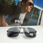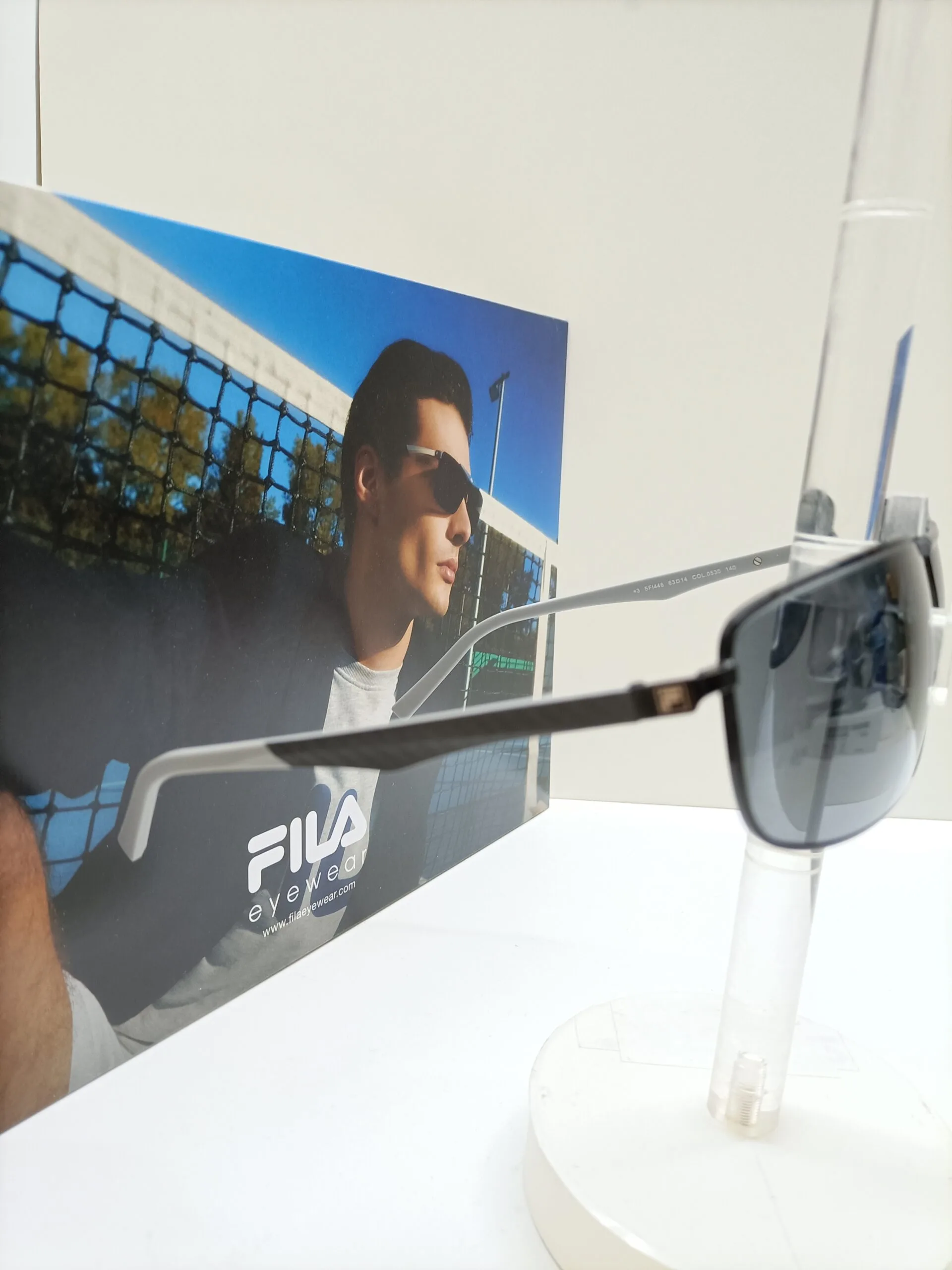 Gafas de sol metálicas con apoyo de plaquetas y lente de color uniforme gris, sus varillas metálicas de fibra llevan terminales grises de goma del mismo color. El material de los terminales hace que con el sudor no se resbalen las gafas de nuestra nariz.