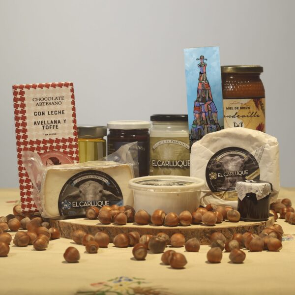 Lote de El Carluque para celebrar las fiestas con productos dulces y salados de pequeños productores. El lote contiene: