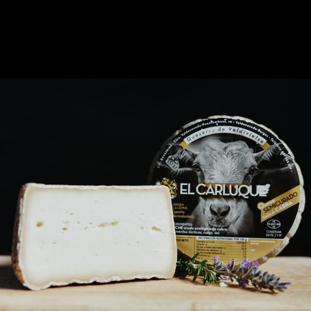 1 pieza de medio queso semicurado El Carluque de leche cruda de 400 g, peso aproximado (cabra u oveja, según disponibilidad).