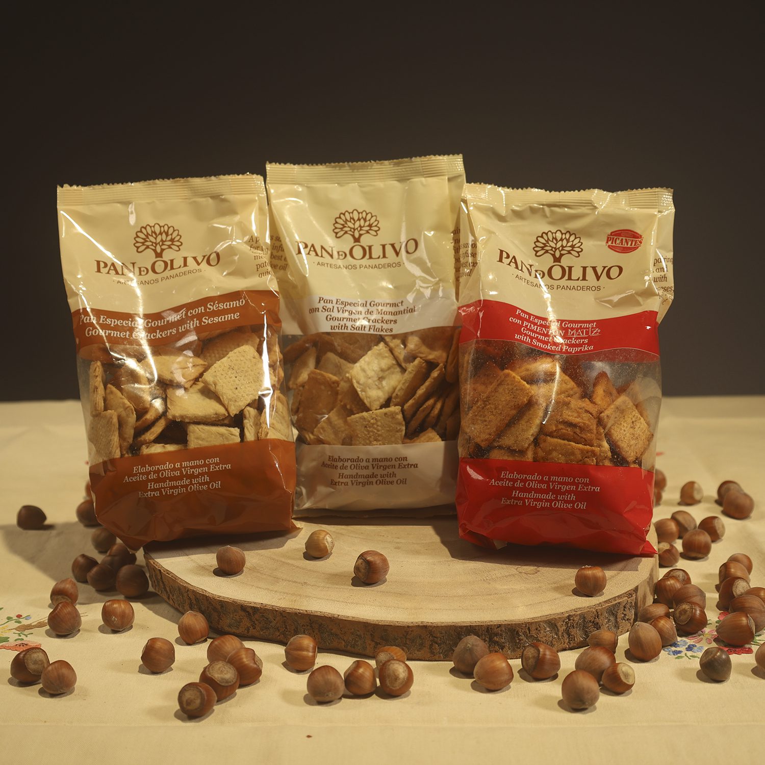 1 paquete de regañás de pimentón, sésamo o sal marina de Pan de olivo de 200 g.