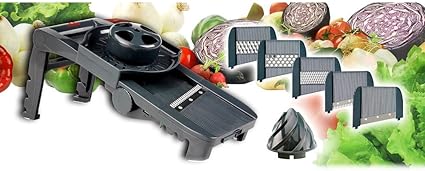 Mandolina Con corte en V con 5 Cuchillas + Exprimidor – Gris