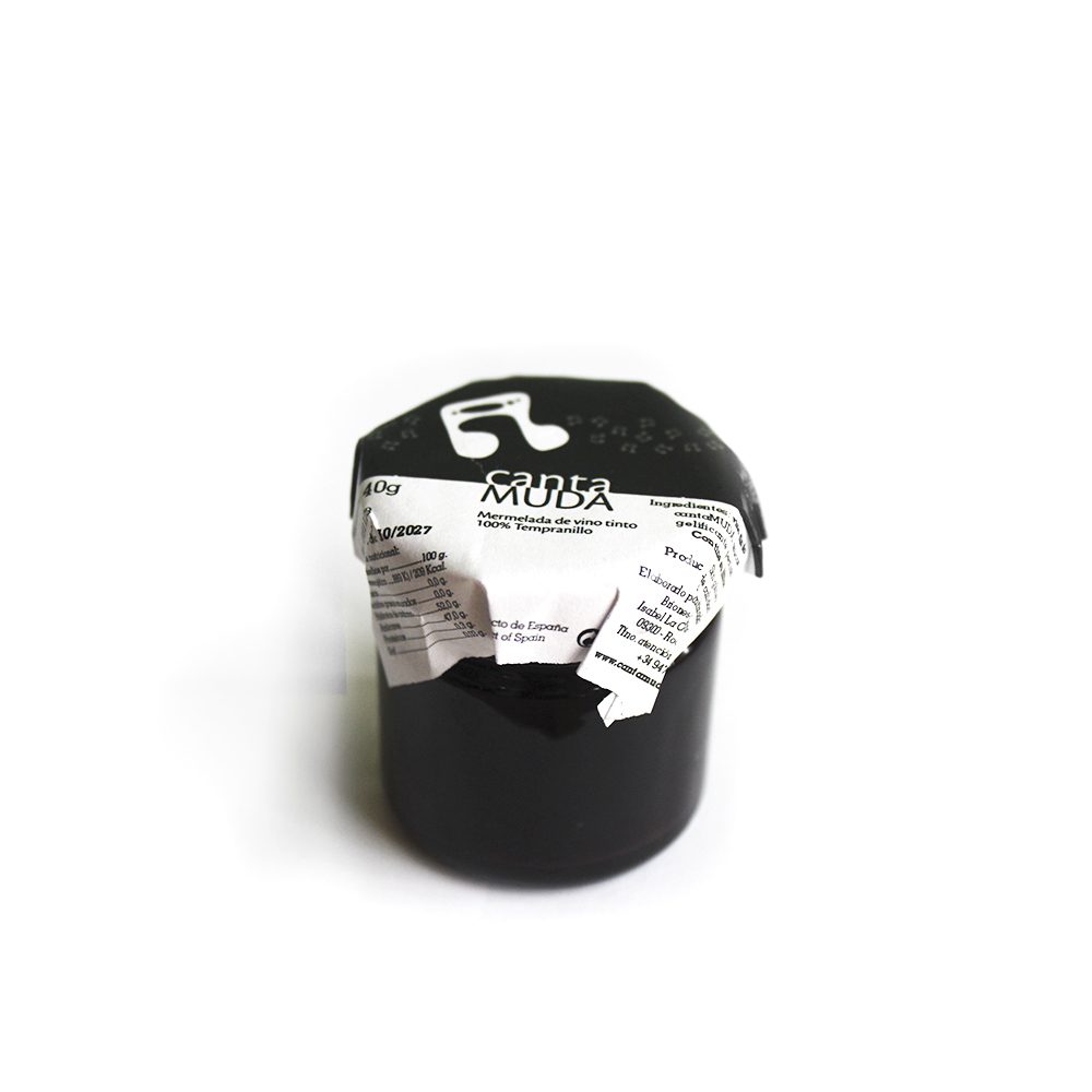 Mermelada de vino tempranillo Cantamuda de 40 gr, de bodegas Briones Abad (Ribera del Duero). Ideal para maridaje con quesos cremosos y yogur de oveja. Sin alcohol.