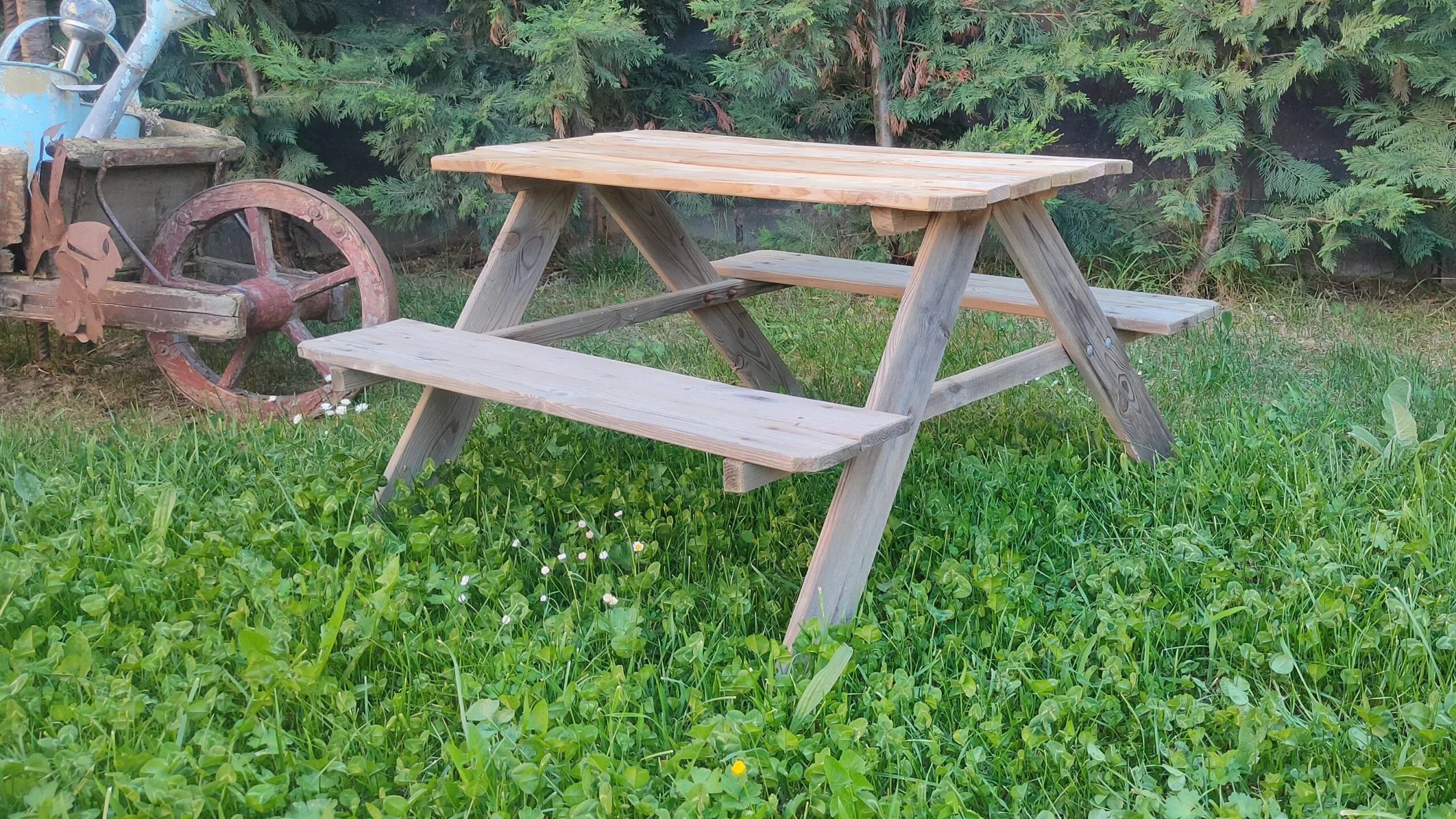 Mide 30cm de alto hasta el asiento/53cm hasta la mesa x 89cm de largo x 44cm de fondo la mesa/89cm de fondo total mesa más dos asientos.