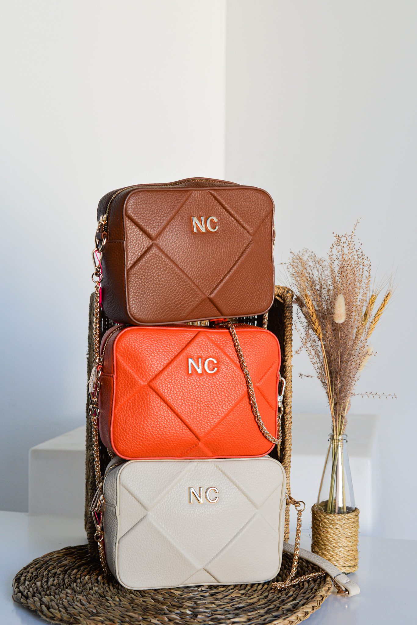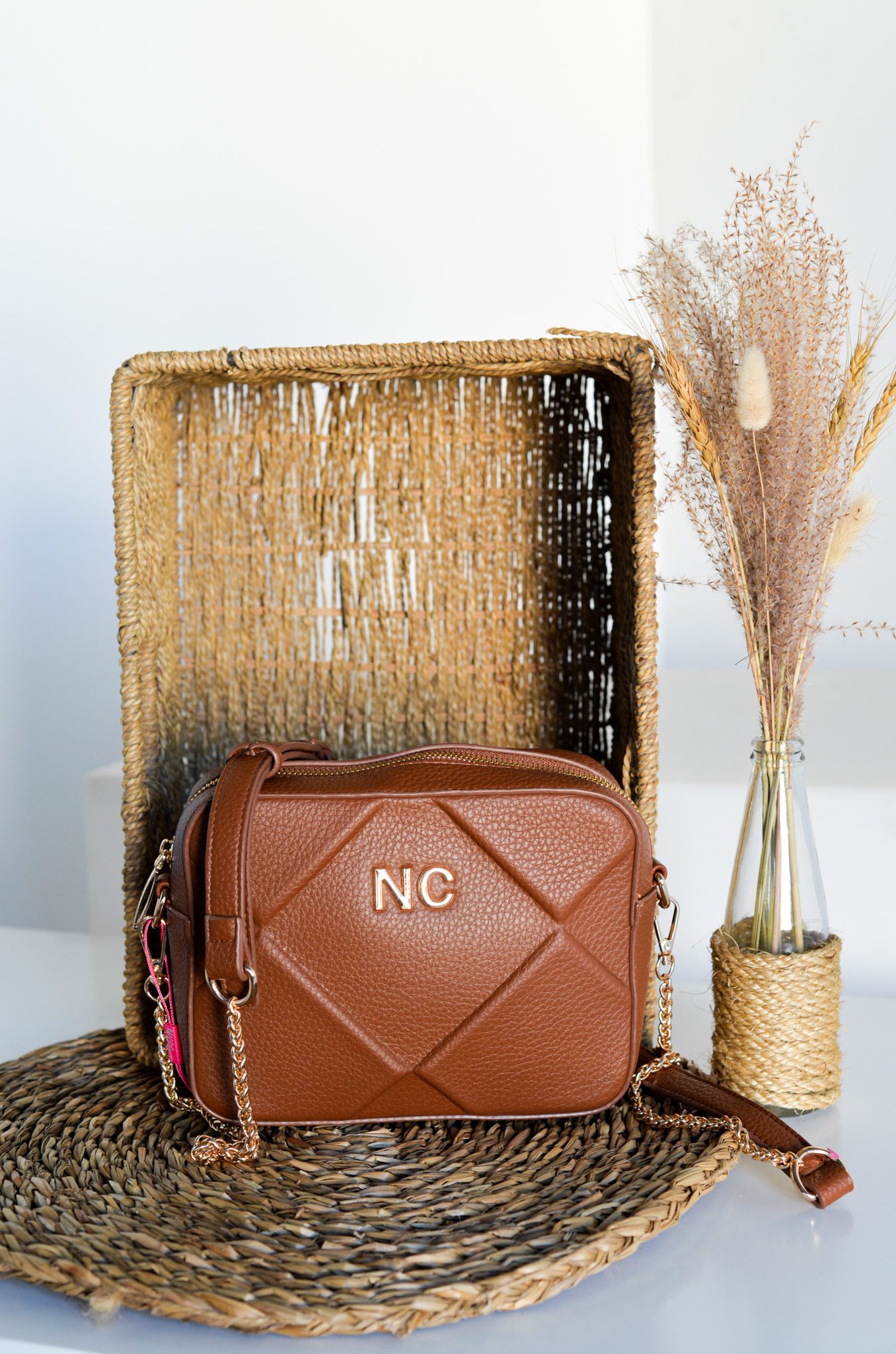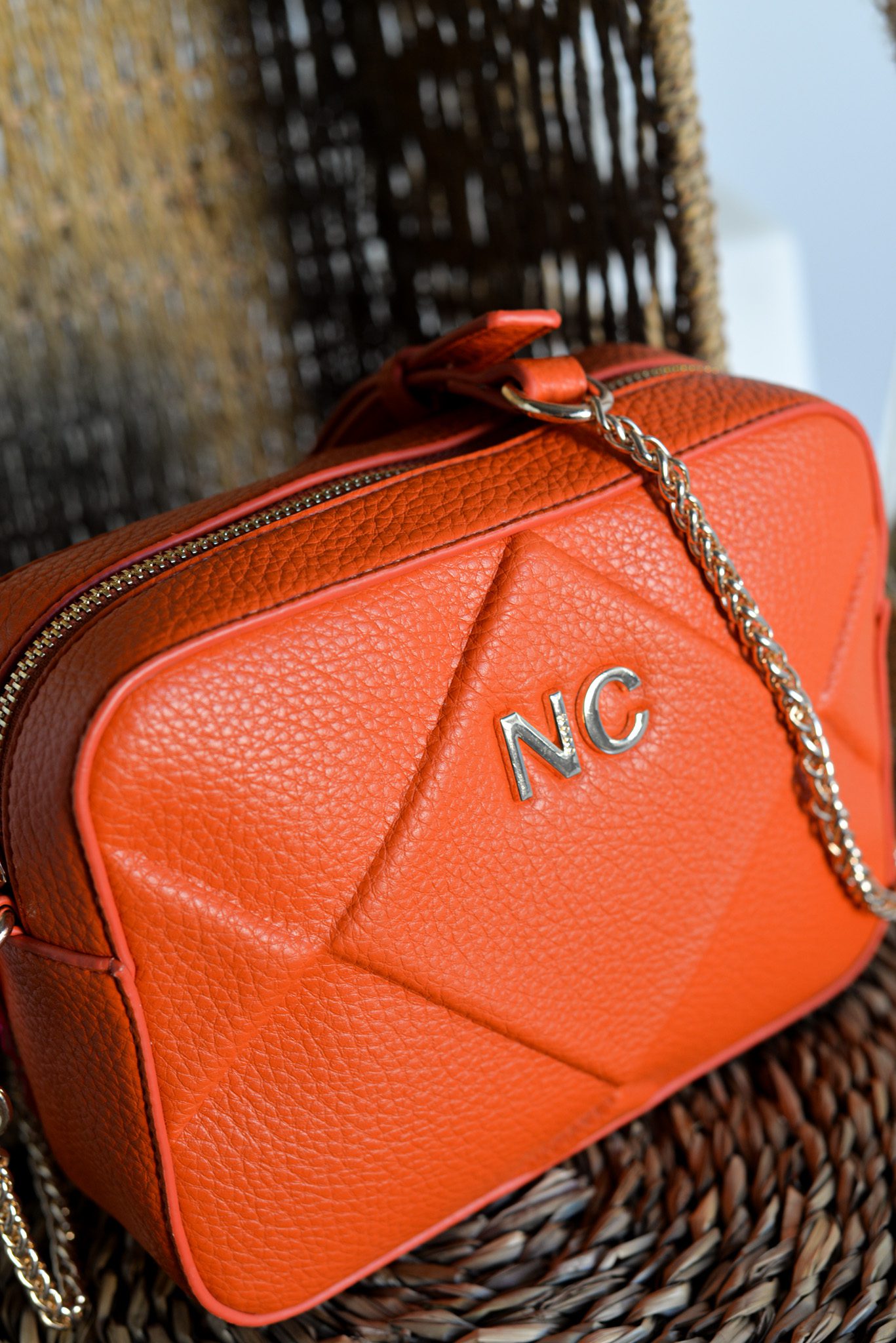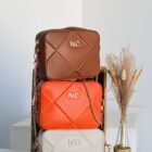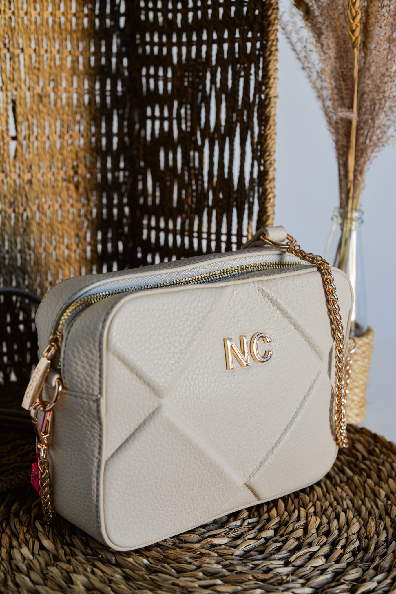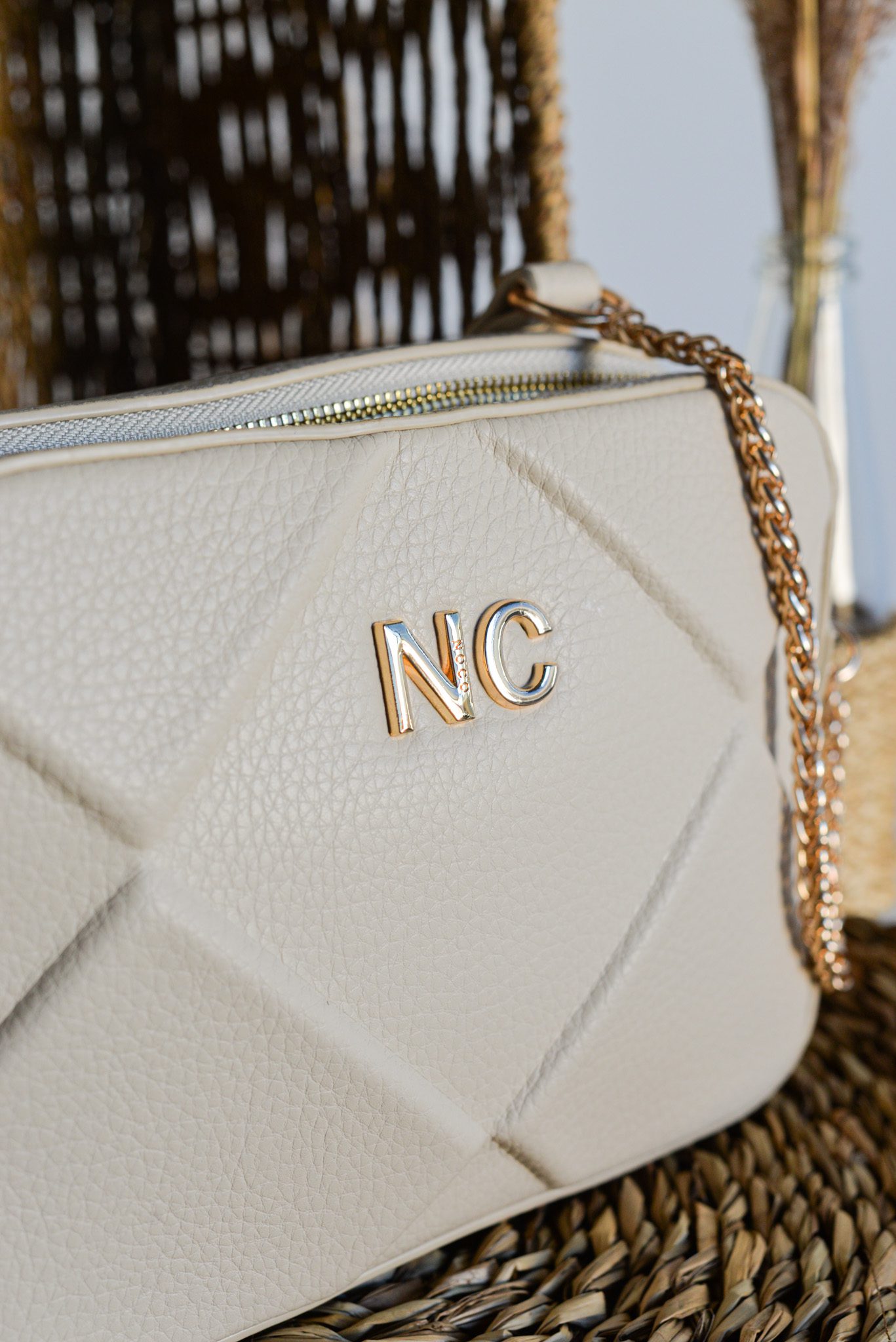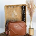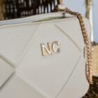 Con correas combinadas de cadena metálica y piel vegana, la bandolera no solo es funcional, sino también un complemento perfecto para cualquier conjunto, desde lo casual hasta lo más elegante. Las iniciales NC en metal en la parte frontal añaden un detalle distintivo que eleva su apariencia.