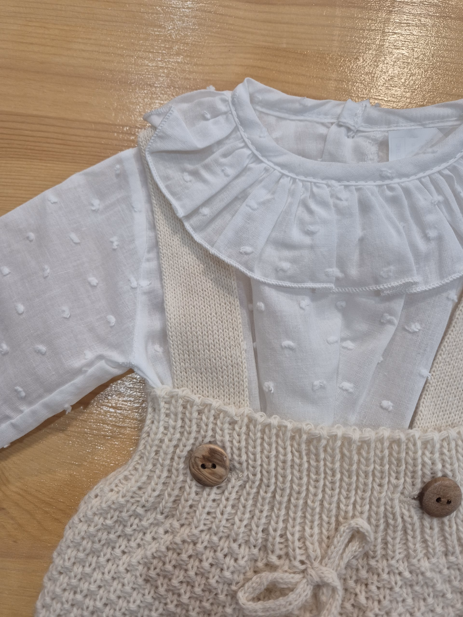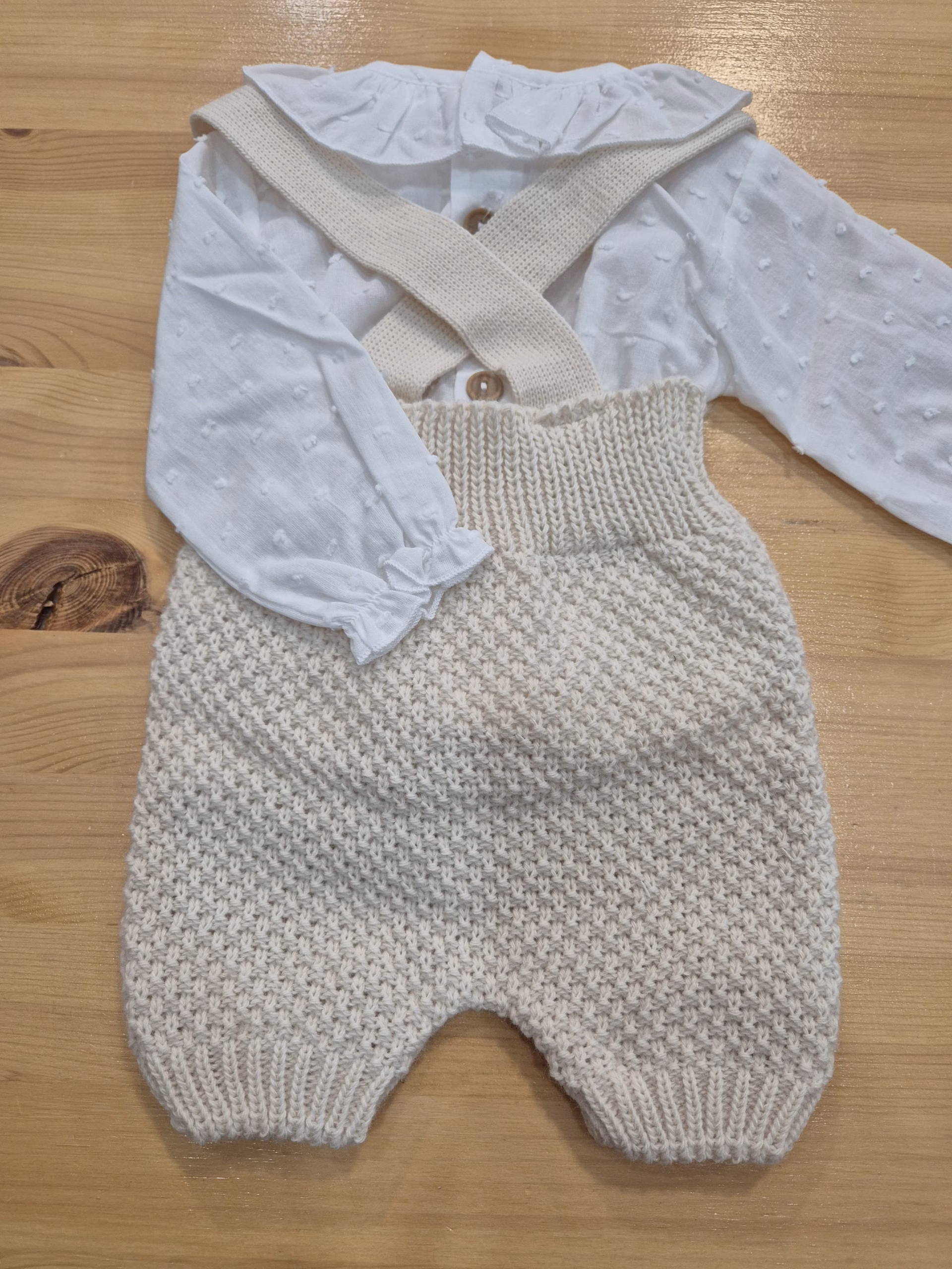Peto beige y camisa plumeti. UNISEX