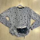 pijama de señora de terciopelo con bolsillos y puños. Dibujos de estrellas en tonos azules.