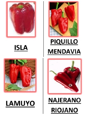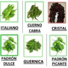 Italiano, guernica, padrón, padrón dulce, cristal choricero, cuerno cabra, riojano de asar de un pico, lamuyo de asar de 4 picos, piquillo de mendavia para rellenar, guindilla gilda de embotar, guindillón, chil,…