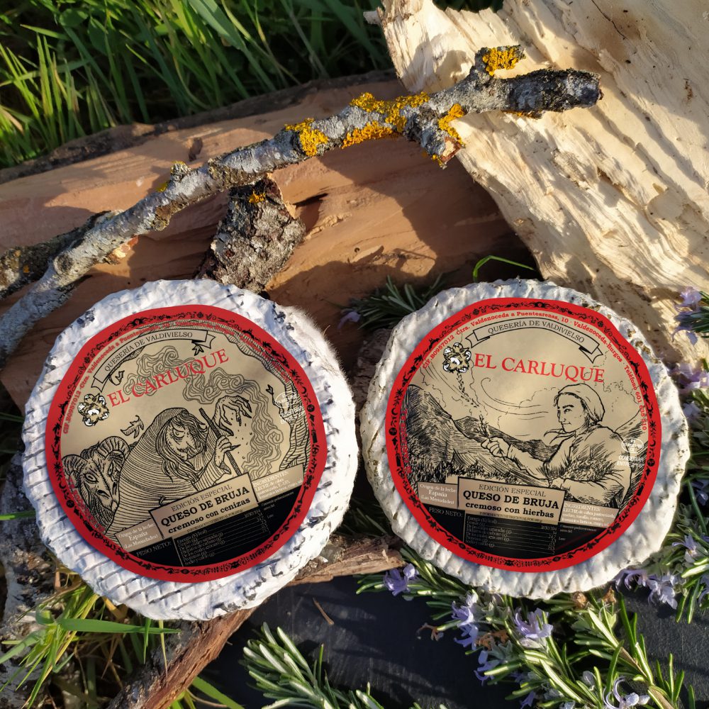 Pack de dos de cabra quesos madurados con mohos, uno con hierbas y otro con cenizas, elaborados en edición especial en colaboración con el proyecto «Breve viaje por la España de las Brujas«. Queso de leche ecológica de cabra pasteurizada con cortezas de enebro, tomillo y romero, y de carbón vegetal. Piezas de 250 gr (aprox.)