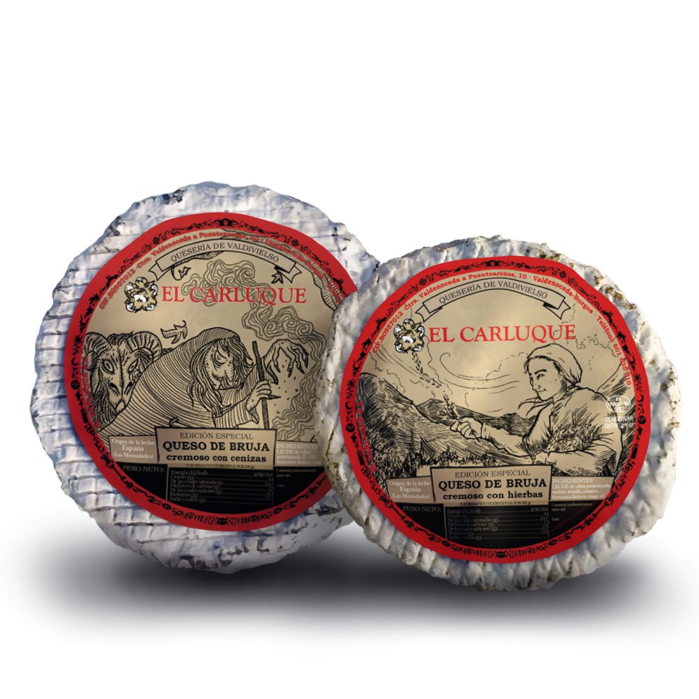 Pack de dos quesos de cabra madurados con mohos, uno con hierbas y otro con cenizas, elaborados en edición especial en colaboración con el proyecto «Breve viaje por la España de las Brujas«. Quesos cremosos de curación láctica, de leche ecológica de cabra pasteurizada, elaborados artesanalmente. Ambas cortezas son completamente comestibles, la de hierbas contiene enebro, tomillo y romero, y la de cenizas tiene carbón vegetal. Piezas de 250 gr (aprox.)