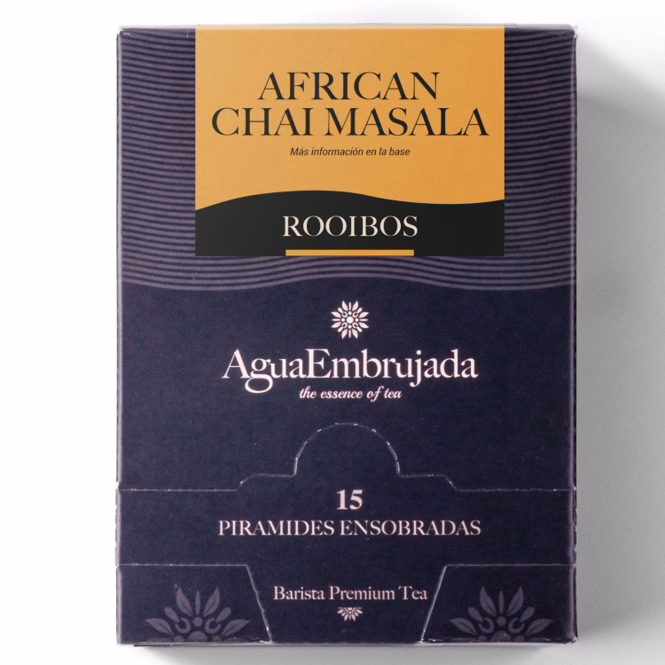 Rooibos African Chai Masala de Agua Embrujada. Estuche de 15 pirámides biodegradables.