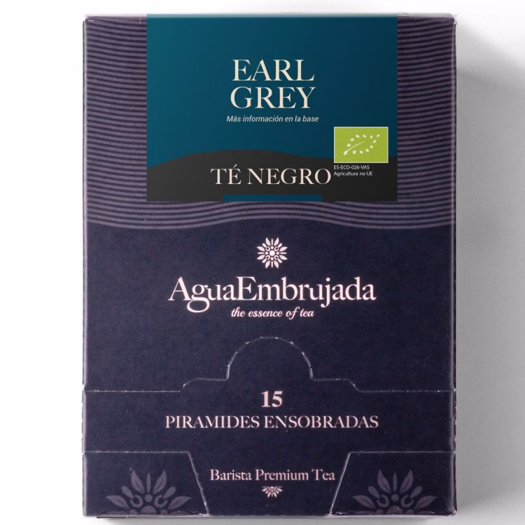 Té negro Earl Grey de Agua Embrujada. Estuche de 15 pirámides biodegradables.