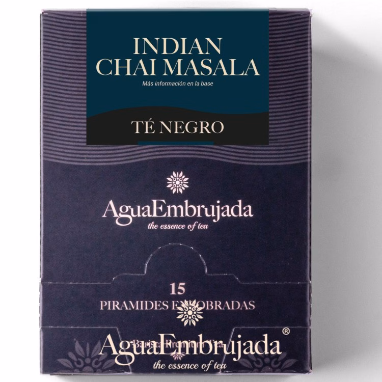 Té negro Indian Chai Masala de Agua Embrujada. Estuche de 15 pirámides biodegradables.