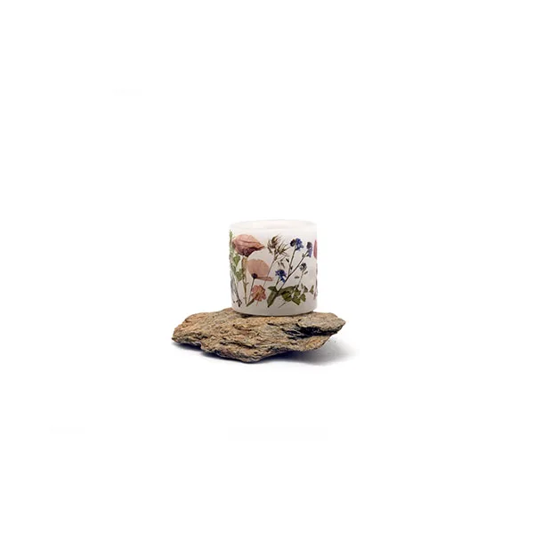 Velas artesanales realizadas en parafina, decoradas con flores naturales de nuestro entorno, que recolectamos, prensamos y secamos para después pegarlas sobre el fanal. Tienen 2 agujeros que sirven para que la vela interior respire y arda mejor. Lo que se enciende es la velita de té que tiene en el interior, por lo que el fanal no se gasta. Cuando la luz ambiente es tenue resaltan mucho las flores, creando un ambiente muy especial. Son válidas tanto para el interior como para exterior.