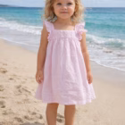 Vestido rosa para niña. Con forro interior. Fresquito y cómodo.
